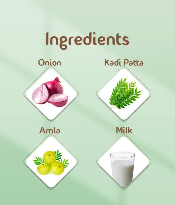 reduces hair fall and stimulates hair growth with the goodness of Onion and Kadipattha